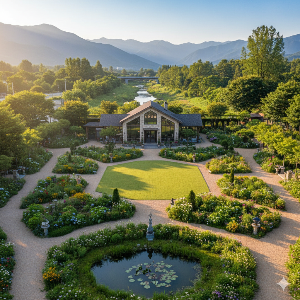 다채로운 정원 구역: 넓은 정원은 크게 잔디밭이 펼쳐진 평지 정원과 다양한 꽃과 식물이 심어진 언덕길 정원으로 나뉘어 있어요. 평지 잔디밭은 시원하게 탁 트인 느낌을 주어 아이들이 뛰어놀기에도 좋고, 언덕 위 정원은 화려한 관상용 식물들 사이로 굽이굽이 산책하는 재미가 있답니다.