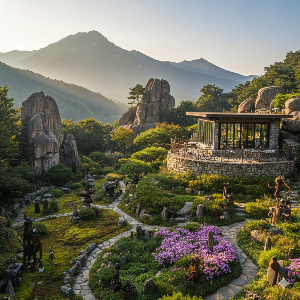재활용 예술 작품: 정원 곳곳에서 만나는 조형물들은 놀랍게도 버려진 폐품으로 만들어졌어요. 예를 들어, 카페 난간에 사용된 철재는 일제강점기에 철거된 화순 동복교의 잔해를 활용한 것이라고 해요! 작품명은 '동복교 100년의 추억'. 흔한 쇳덩이나 버려진 나뭇조각이 수천 년의 역사와 생명력을 담은 멋진 예술품으로 변신한 모습을 보며 무한한 상상력과 영감을 얻을 수 있답니다.